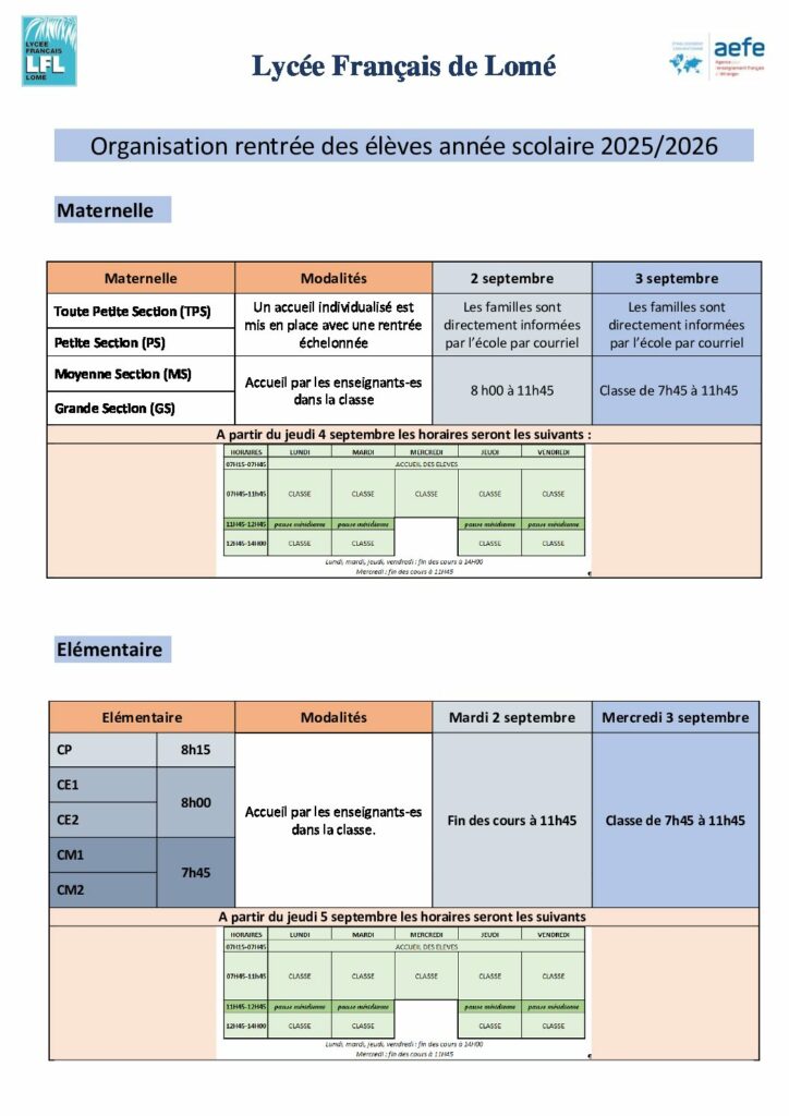 L’école Française de Lomé est un établissement à gestion parentale, conventionné avec l’AEFE (Agence pour l’Enseignement Français à l’Etranger). L’enseignement qui y est dispensé repose sur des valeurs et des […]