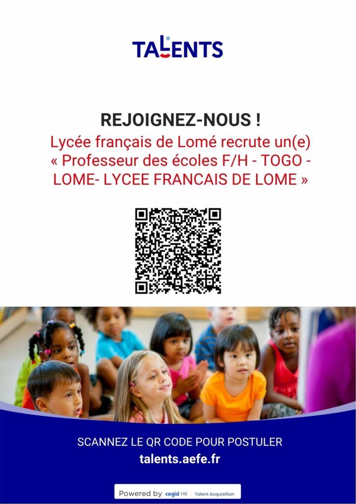 Rejoignez l’équipe enseignante du Lycée Français de Lomé, Établissement homologué par le Ministère Français de l’Éducation nationale et conventionné par l’AEFE.