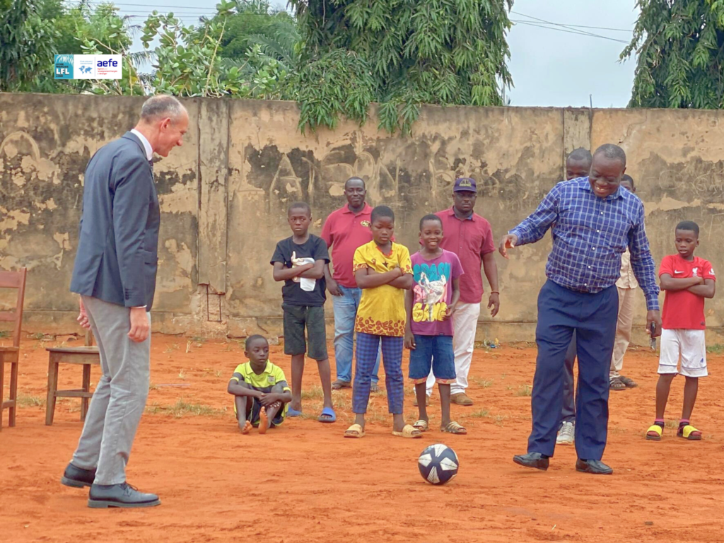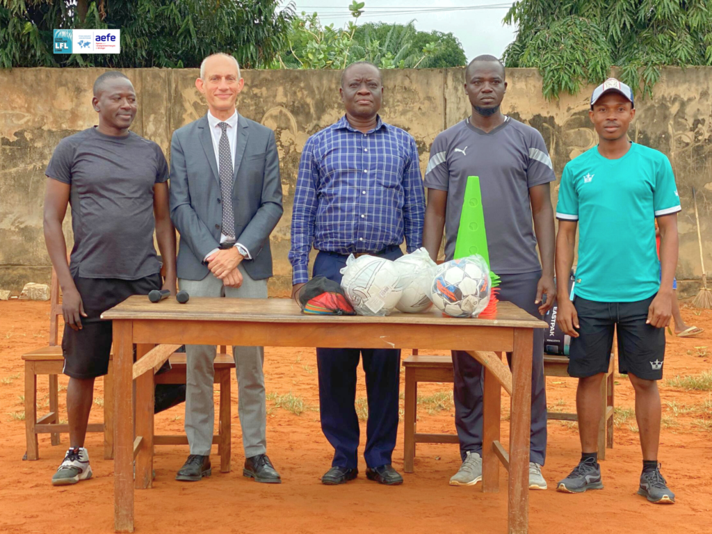 En marge de la signature, quatre matchs amicaux ont opposé les moins de 16 ans des deux lycées. L’ASLFL, représentée par Christophe Laborde, Proviseur du LFL et Président de l’ASLFL, et Bassoma Bawila, Coordonnateur EPS, a profité de l’occasion pour remettre au Lycée Tokoin Solidarité un lot de matériel sportif (ballons, plots et cage).